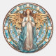 Bring a touch of heavenly beauty into your space with our Art Deco Angel Stained Glass stickers. This exquisite sticker showcases a graceful winged angel, palms placed together in prayer, adorned in flowing white and blue robes. The angel is framed within a captivating circular stained glass window motif, evoking the elegance of Art Deco design. Perfect for windows, glass doors, or any smooth surface, our Art Deco Angel stickers are a charming addition that adds a sense of divine tranquility to your surroundings.