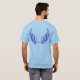 The word angel is derived from the Greek word angelos, which means "messenger." Angels are found within three key religions: Judaism, Christianity and Islam. Yet, angels, or divine helpers, were also found within Sumerian, Babylonian, Persian, Egyptian and Greek writings, as well. This tee pulls from these references by placing a pair of wings prominently on the back of the shirt (this version in blue).