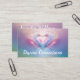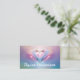 The business card features a beautifully serene illustration of two angel wings gently embracing a heart, symbolising the protection and guidance provided by our guardian angels.