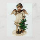 This Vintage Postcard features a little angel holding a small Christmas tree.