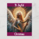 Beautiful picture of an angel looking up, while playing the harp, is featured on this Christmas postcard. Front of postcard reads, "A Joyful Christmas" and back of postcard reads, "To You and Your Family, A Blessed New Year too"! A lovely postcard to send to family and friends for Christmas time!