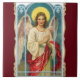 vintage art with painting of an angel with with a large red ribbon, lovely white smock with gold trimmings and hands together in prayer.