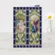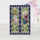 Send Easter Blessings to family and friends with this handsome religious card simulating stained glass in rich dark blues, bright spring greens, soft warm yellows, and silver greys. Done in the Liberty Style, the British version of Art Nouveau, two long rectangular panels with figured scenes arranged side by side represent two seated angels at the empty tomb on the left and the Three Marys come to anoint the body of Jesus on the right in oval frames surrounded with stylised greenery. + Inside: The relevant Gospel passage, Mark 24:1-6, provides context for the imagery. + Image Credit (RT 01): Antique images from an embossed postcard in chromolithography entitled A Peaceful Easter, Easter Hymns Series, No. 714, originally published by Raphael Tuck & Sons, London, England, and printed in Saxony, Germany, 1912, from the designer’s private collection. Quote (Mark 24:1-6): The Open English Bible (OEB), which is in the public domain under a Creative Commons Zero (CC0) license.