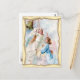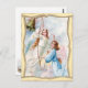 vintage art with painting of two angels holding a gold cord and ringing a bell in the sky. suitable for children.