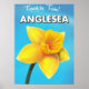 Anglesea Vintage travel poster cartoon. Anglesea, Wales,UK daffodil travel poster.