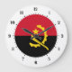 Design with flag of the Republic of Angola; red and black flag with a yellow symbol of crossed machete and cog wheel with a gold star