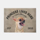 Angry Chihuahua Personalised Dog lover welcome doormat. This welcome mat can be personalised with your dog’s name, the slogan can also be changed or you could use a picture of your own dog (make sure it's transparent). Text reads: Princess lives here…. All treats welcome