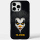 This iPhone case is for clown fans. The design features a grumpy and angry looking clown with yellow eyes. You can personalise the text.