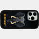 This iPhone case is for elephant lovers. The design features a grumpy and angry looking elephant with yellow eyes. You can personalise the text.