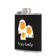 The flask itself is fine. It’s a cheap flask, obviously bought in bulk, however am prepared to overlook that. Given that it is a personalized item, I would have liked to have seen gift boxing instead of the generic packaging. Terrible printing, and/or quality. It’s a cheap, tacky vinyl. It is not cut straight and is also applied in a way that it is overhanging the bottom, causing the glue to catch on items and it will eventually roll and tear, damaging the wrap.