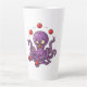 A humorous illustration of a purple octopus with a very angry and grumpy expression. Despite its mood, it's skillfully juggling five red balls with its tentacles. The character's comically furious face provides a funny contrast to the playful act of juggling.