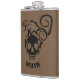 The flask itself is fine. It’s a cheap flask, obviously bought in bulk, however am prepared to overlook that. Given that it is a personalized item, I would have liked to have seen gift boxing instead of the generic packaging. Terrible printing, and/or quality. It’s a cheap, tacky vinyl. It is not cut straight and is also applied in a way that it is overhanging the bottom, causing the glue to catch on items and it will eventually roll and tear, damaging the wrap.