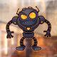Vector cartoon illustration of an angry robot getting ready for battle. This mean and nasty robot is dark grey with orange eyes and highlights. Tags: robot, droid, android, warrior, battle, gladiator, fight, mean, angry, mad, orange, black, machine, future, artificial intelligence, cartoon, vector, nasty, cyborg