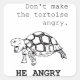 Image created from one of my original sketches. It shows a hand drawn tortoise with mouth open and the words: “Don’t make the tortoise angry. HE ANGRY.” Original image is in black ink with black text; the image for darks is in neon with bright text.