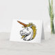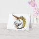 Unicorns come in all sorts of looks and designs and this one is particularly interesting as it is of an angry looking unicorn. This unicorn design is from the neck up. The unicorn has an impressive yellow main and then an angry expression. This angry unicorn design looks great on these greeting cards