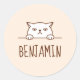 Angry White Cat Beige Custom Name Classic Round Sticker