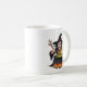 Enjoy your coffee this spooky season with this Halloween mug featuring a cartoon witch brewing a glowing green potion in a bubbling cauldron over blazing fire, surrounded by magical smoke and sparks.