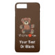 Maintain communications with other chocoholics. Features a teddy bear, who appears to be more than a little bit worried that someone might take his chocolate, along with the Hebrew slogan "Ani - a red heart - Shokolad," I Heart (Love) Chocolate. Add your own additional text.