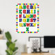 A cute alphabet poster where you'll find such favourites as cats, frogs and xantis yaks! The yellow, red, blue and green colour palette make this perfect for a boy's or girl's room!
