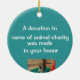 If your gift (on any occasion) for a special person is a donation to a domestic animal shelter or wildlife charity, then this ornament is a fun and unique way to have a permanent memento for that friend or family member.