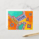 Originally sold as an abstract artwork on canvas, this bright and colourful painting makes a lovely postcard. Feeling like aboriginal art or a folk art map of the local terrain, it could also belong to the shaman of the tribe. We dream of the animals, of what do they dream?