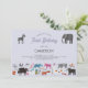 Featuring all sorts of jungle, safari, zoo animals, pets, birds and wildlife. A monster and a dinosaur mmight have sneaked in there too. Perfect for an animal lover's first birthday celebration. You can easily customise the invitation to your liking by changing any of the text. Original art by Nic Squirrell.