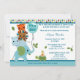 Gender neutral baby shower invitation. Features an elephant, hippopotamus, lion, tiger, turtle and cute little bird/chick. Features: shades of GREEN, BLUE, RED, ORANGE, YELLOW and BROWN colour theme, as well as polka dots. This MonkeyHutDesigns baby shower invitation coordinates with many of today's popular baby crib bedding set(s), like the Animal Parade set, and many others. This invitation can match just about any jungle safari theme and is great for either a BOY or GIRL (neutral).