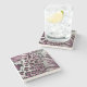 The coasters are gorgeous, a quality feel and heavy weight. They look like a precious archeological find. A rustic stone juxtaposed with a modern floral black and white print. I like the way the print goes slightly imperfect on the cut stone edges giving them a kind-of natural beauty.