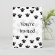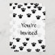 Black paw print pattern on a white background. Looks like foot prints an animal might make after walking in black ink.