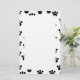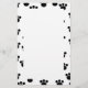 Black paw print pattern on a white background. Looks like foot prints an animal might make after walking in black ink.