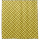 This fun shower curtain features a geometric abstract pattern of paw prints in gold, yellow, brown and black diamond squares.
