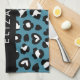 Animal Print, Blue Leopard, Hearts, Your Name Tea Towel