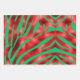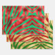 Custom wrapping paper sheets featuring festive gold, red, and green animal print. Includes set of (3) three wrapping paper sheets.