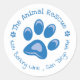 Animal Rescue Paw Print White and Blue Classic Round Sticker