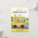 Get ready for a fun-filled baby shower with this playful animal school bus invitation! Featuring an adorable group of animals like a giraffe, elephant, crocodile, and more, riding together in a cheerful yellow bus, this card brings a sense of adventure and joy to your baby celebration. The vibrant design, set against rolling green hills and playful clouds, is perfect for jungle or safari-themed baby showers. With its colourful and whimsical style, this invitation is ideal for both boys and girls, making it a great choice for an exciting and memorable baby shower event.