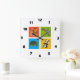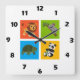 This wall clock showcases a collection of cute baby animals over orange, green blue and yellow squares in this zoo animal style and theme. This clock is made for any wall and printed with a AcryliPrint®HD process and made from grade-A acrylic. Battery operated uses one AA battery for Indoor use only, not recommended for outdoor use.