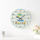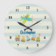 Animal Toy Train and Aeroplane on Stripes Large Clock