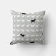 A fun sheep repeat patterned throw pillow with white sheep and the cheeky black sheep smiling animal mono design. Art and design by Sarah Trett.