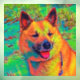 Colourful graphic portrait of an adult icelandic sheepdog