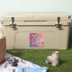 The stick looks amazing. Unfortunately, it would not stick on our suitcase as it was textured. When we found a non-textured (smooth) suitcase, the sticker stuck and looks great. The printing looked awesome.