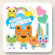 Cute, colourful, and fun animal friends design T-shirts, bibs, blankets, burp cloths, bathroom sets, wall clocks, bags, mugs, keepsakes, and more features an owl, bear, squirrel, bunny rabbit, and frog, a sun, rainbow, hearts, and cloud with text that reads Good Friends!