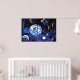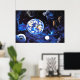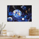 Featuring  a breath taking view of a space scape with Animals in space floating and the earth in the back ground  .this is a beautiful photo on this poster