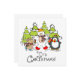 A cute, colourful Christmas holiday design flat card featuring a polar bear, penguin, and mouse all with scarves and ice skates with snow covered trees and text that reads It's Christmas!