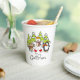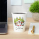 A cute, colourful Christmas holiday design paper cups featuring a polar bear, penguin, and mouse all with scarves and ice skates with snow covered trees and text that reads It's Christmas!