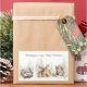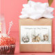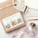 This design features a watercolor illustration of a deer, a squirrel, and a hedgehog in a winter snowy forest.