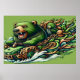 Animated Bears Riding a Green Car in a Vibrant Fan Poster