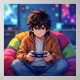 Poster for a boy who likes to play video games. Great for pre-teen and teens. Anime boy playing video games with a serious look.