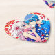 Anime boy and girl cuddling surrounded by colourful flowers. Cute anime couple, girl with pink hair and boy with blue hair. Colours are red, blue, white, pink and purple. Pretty for weddings, Valentine's Day or an anniversary.