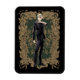 This anime-style graphic exquisitely captures Draco Malfoy, a complex character from the Harry Potter series, in a moment of contemplative elegance. Set against a dark green background adorned with ornate golden floral patterns, Draco stands poised and confident. His platinum blonde hair and sharp gaze convey his aristocratic bearing and inner turmoil. The intricate tattoo of the Dark Mark on his arm hints at his deeper layers and the personal evolution he undergoes throughout the series. This portrayal blends traditional wizarding attire with a modern twist, reflecting the blend of old and new in Draco's character arc.