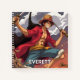 Anime fanart of Luffy from One Piece with swords, fire and clouds. Design by Sara Motolanez